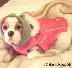 本日12/17は彼女の9回目のバースデイ。 赤いダウンジャケット(袖無しフード付き)を送りました。